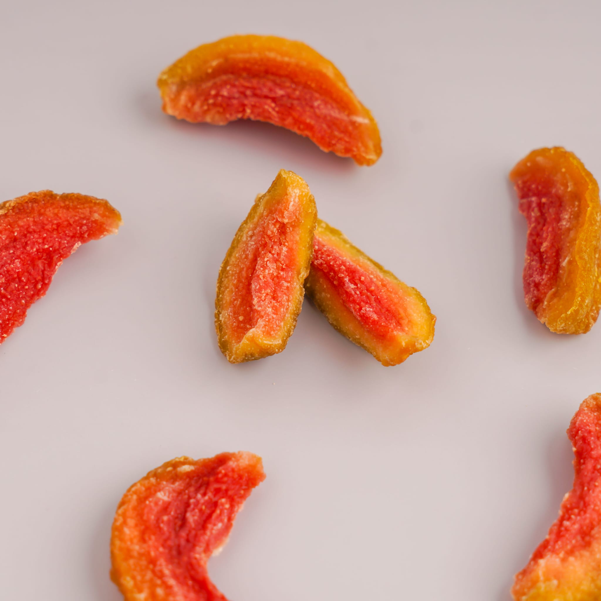 نختارها في مرحلة النضج الكامل ثم تُجفف بعناية للحفاظ على لونها الطبيعي، قوامها المتماسك، وتركيز نكهتها دون الإخلال بطابعها الطازج.