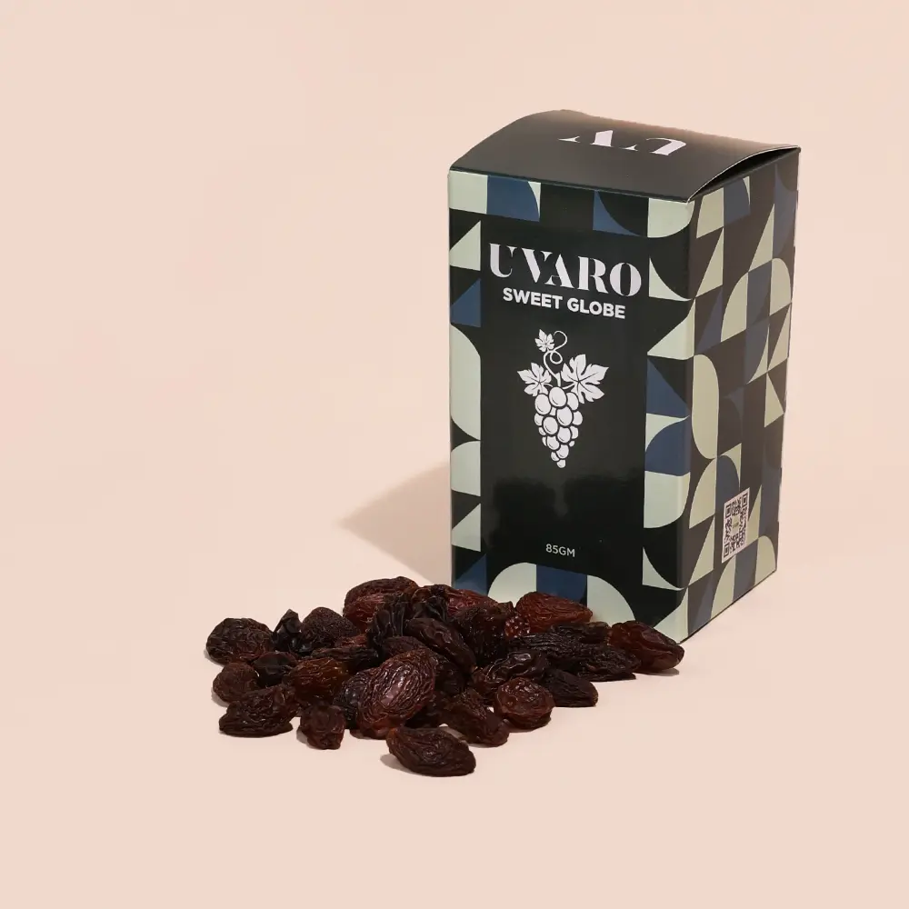 نستورده مجففًا من مزارع أسترالية متخصصة، حيث يُقطف في ذروة نضجه ليُحافظ على طراوته الداخلية رغم تجفيفه، فينتج عنبًا مجففًا بطابع استثنائي يجمع بين الانتعاش والحلاوة الخفيفة.